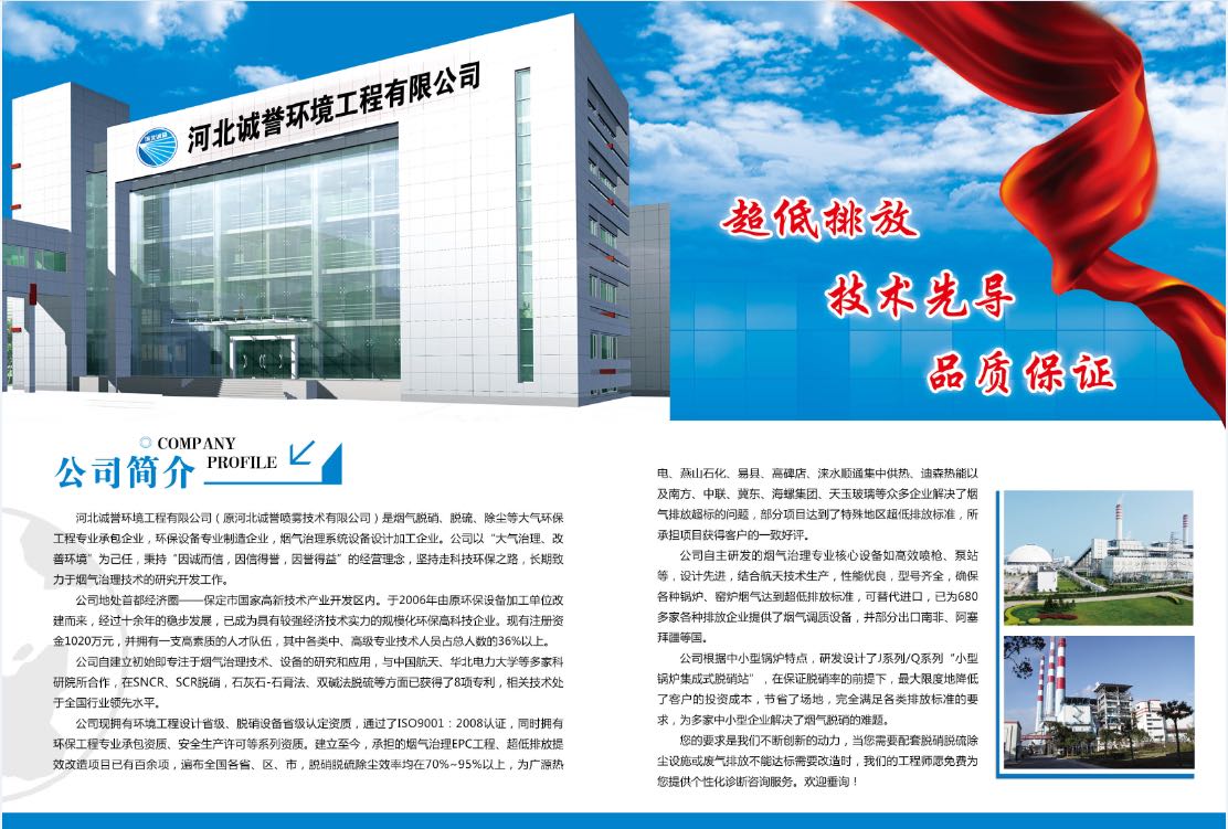 河北誠(chéng)譽(yù)環(huán)境工程有限公司(原河北誠(chéng)譽(yù)噴霧技術(shù)有限公司)是一家專(zhuān)業(yè)從事煙氣脫硫脫硝的高科技環(huán)保企業(yè)。公司擁有近二十年霧化經(jīng)驗(yàn),主要業(yè)務(wù)領(lǐng)域包括:SCR、SNCR脫硫脫硝系統(tǒng)設(shè)計(jì)、脫硝工程承包,各種規(guī)格型號(hào)脫硫脫硝噴槍噴嘴、霧化噴嘴噴槍的研發(fā)、生產(chǎn)及銷(xiāo)售。產(chǎn)品廣泛應(yīng)用于電力、水泥、化工、食品、制藥等行業(yè)。